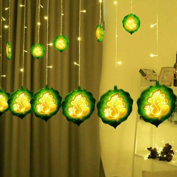 Ganesh Curtain String Lights Warm White with 6+6